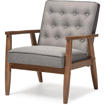 Giữa Thế Kỷ Retro vải hiện đại bọc Ghế phòng chờ bằng gỗ nút-tufting thiết kế nhà giải trí ghế với cơ sở bằng gỗ